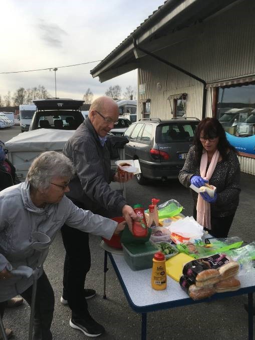 Det hele startet med servering av hamburgere og/eller pølser. Klubbens arrangementskomite, godt suplert av Grethe Enger, sørget for serveringen.