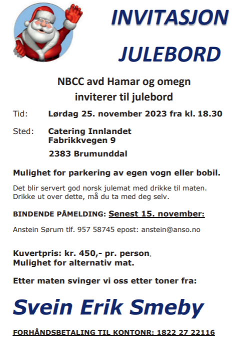 NBCC avd. Hamar og omegn inviterer til julebord